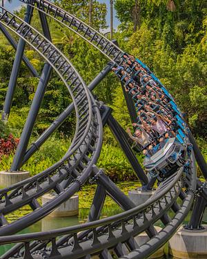 Velocicoaster rushing out of it's zero-g stall.